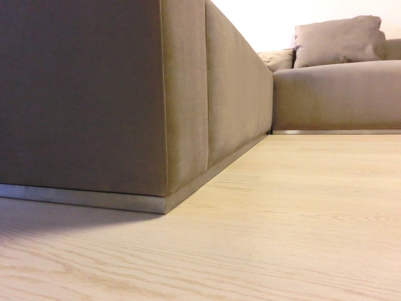 Das Ecksofa mit glattem Sitz und niedrigen Rücklehnen wird durch größere Federnpolster ergänzt, die zum gemütlichen Faulenzen rund ums Fernseher einladen. Dank des Sockels aus Holz oder Edelstahl unter dem Sitz gibt es auch ein praktisches Designelement gegen die Schmutzlagerung unter dem Sofa.Diese Sitzgelegenheit wirkt im Interieur beeindruckend und lässig zugleich.