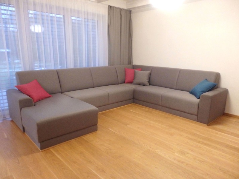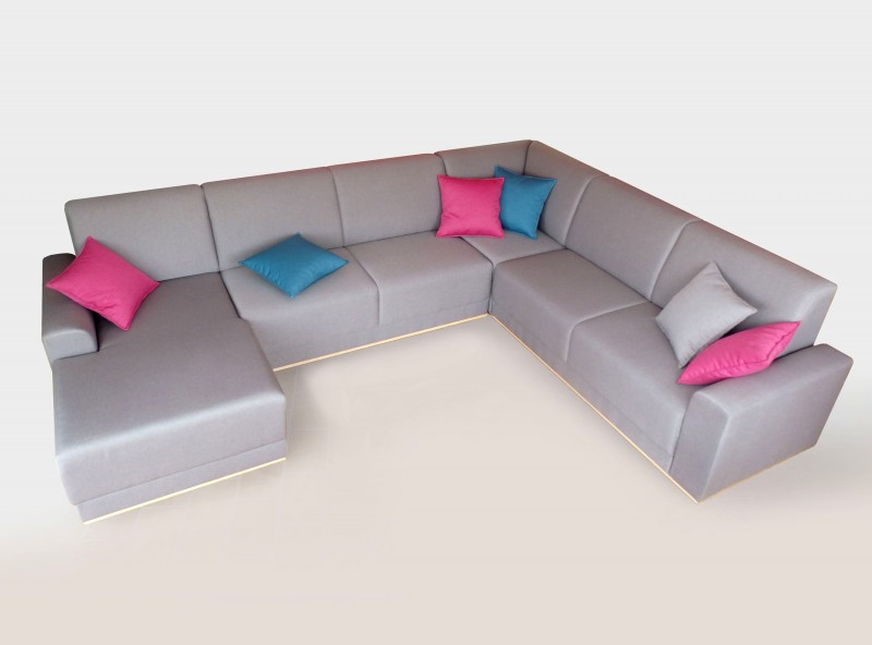 Diese gepolsterte Sitzgarnitur ist überall dort geeignet, wo es zur größeren Menschenversammlung kommt. Dank der U-Formdisposition mit ausgestrecktem Fauteuil, der bequemen Sitzfläche und kleinen Design-Polsterkissen werden gerne alle Familienmitglieder und auch Ihre Gäste sitzen.