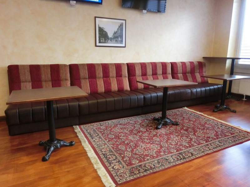 Die gepolsterte Bank mit atypischen Polsterungsdesign – eine Kombination aus Leder und Stoffbezug - ist ein interessantes Bestandsteil des Interieurs.Diese könnte im jeden Innenraum beliebig variieren – nebeneinander oder in U- und L-Form. Die Bänke können verschiedene Längen und Formen haben.Die Polsterungsmaterialien offerieren wir in Lederimitation, Leder oder als Stoffe, Sie können natürlich auch Ihr Eigenmaterial mitbringen.Die Farbe, das Material, die Maße und die Form der Möbel passen wir Ihren Anforderungen gerne an.Die Sitzbänke werden entsprechend den gewünschten Längen vollständig zusammengebaut.
