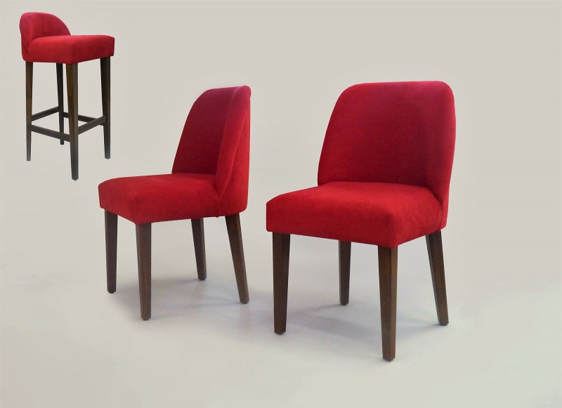 Stylová židle s čalouněnou opěrkou a dřevěnými nožkami se výborně hodí do kanceláří, salonků, restaurací i hotelových interiérů. Ve stejném designu lze vyrobit také barovou židli s nízkým opěradlem. Díky masivní konstrukci v kombinaci s kvalitním čalouněním je zaručeno nejen pohodlí, ale také dlouhá životnost.