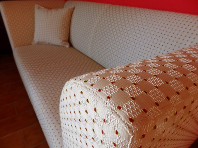 Ein einfaches, aber stilvoll wirkendes Sofa mit Deko-Kissen - genau das ist Sofa Suzete.