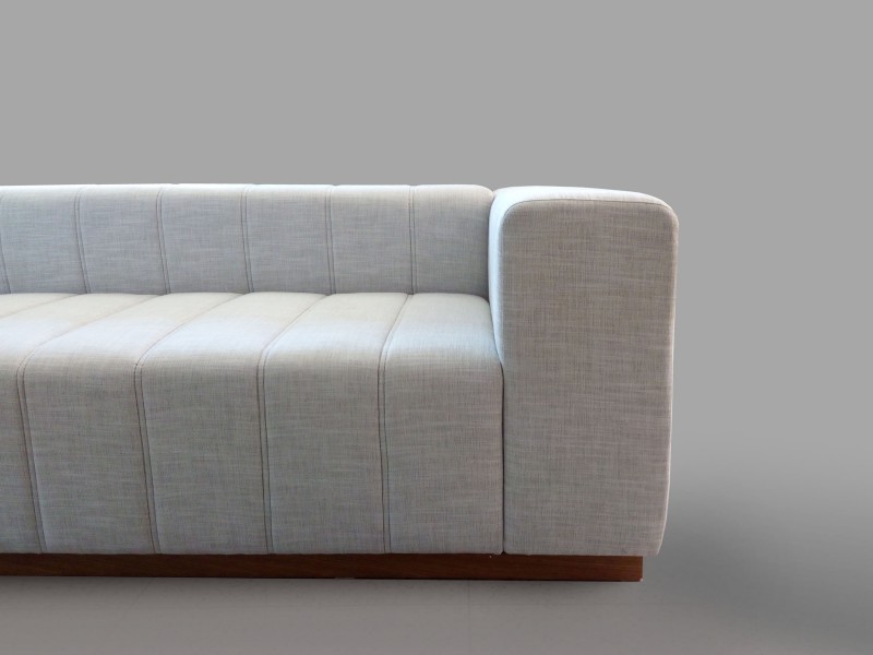Dieses Design-Sofa mit abgesenkten Rücklehnen ist für Wohnzimmer, Büro, Hotel- und andere Geschäftsräume ideal geeignet. Die leicht „plastische“ Versteppung der ganzen Sitzgarnitur lässt dieses im offenen Raum am wirksamsten erscheinen.