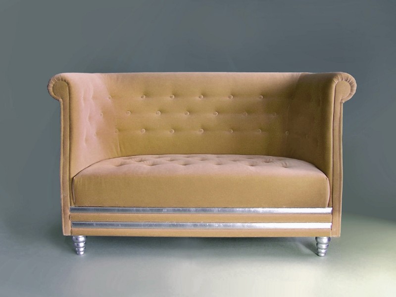 Das Sofa könnte mit einem Sessel oder einem Taburett des gleichen Designs ergänzt werden.
