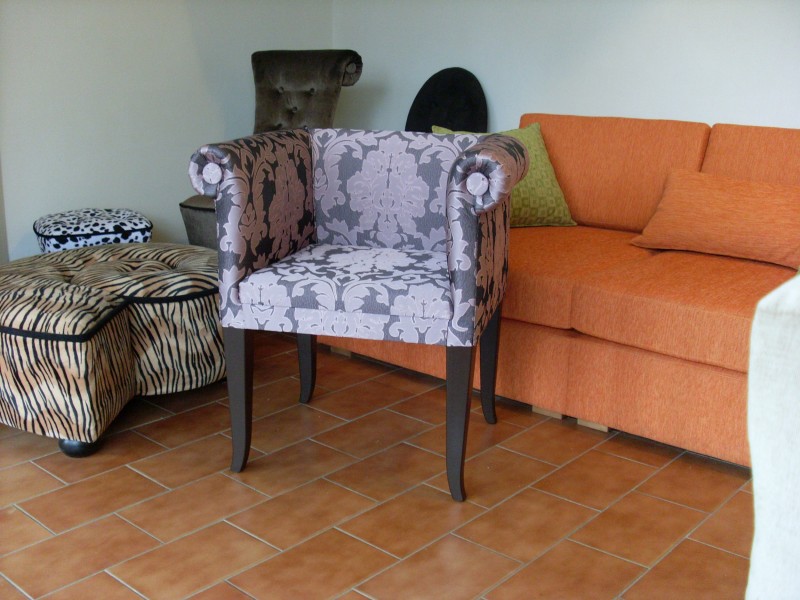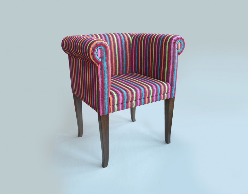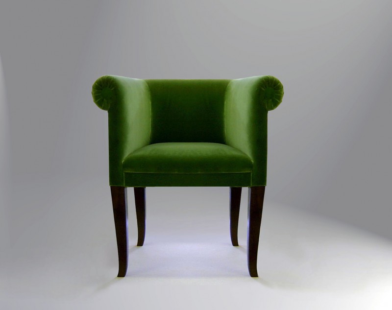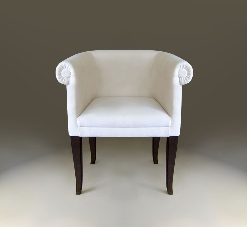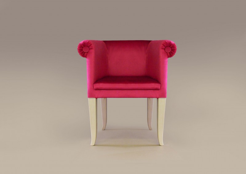 Der Stilvoller Sessel mit ovalen Rückenlehnen auf hohen Beinen aus Massivholz wirkt luftig und lädt in Kombination mit farbigem Bezugsmaterial direkt zum Sitzen ein.
