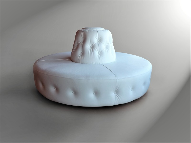 Das kreisförmige Sofa mit Polsterknöpfen und durchgenähter Lehne ist ein bequemes Sitzelement, welches sehr effektiv im Zentrum jedes Interieurs wirkt. Damit eignet sich dieses Möbelstück nicht nur für Rezeptionsbereiche und Warteräume, sondern auch für Restaurants, Clubs und Einkaufsstätte.